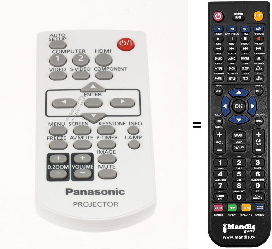 Télécommande qui remplace celle d'origine car elle possède les mêmes fonctions.