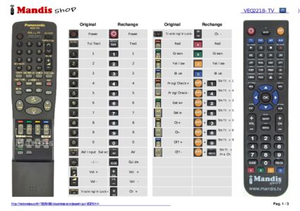 Un document est inclus pour vous aider à utiliser facilement la nouvelle télécommande, en indiquant la correspondance des boutons.