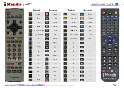 Un document est inclus pour vous aider à utiliser facilement la nouvelle télécommande, en indiquant la correspondance des boutons.