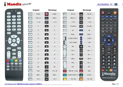 Un document est inclus pour vous aider à utiliser facilement la nouvelle télécommande, en indiquant la correspondance des boutons.
