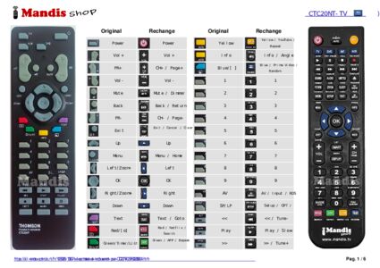 Un document est inclus pour vous aider à utiliser facilement la nouvelle télécommande, en indiquant la correspondance des boutons.