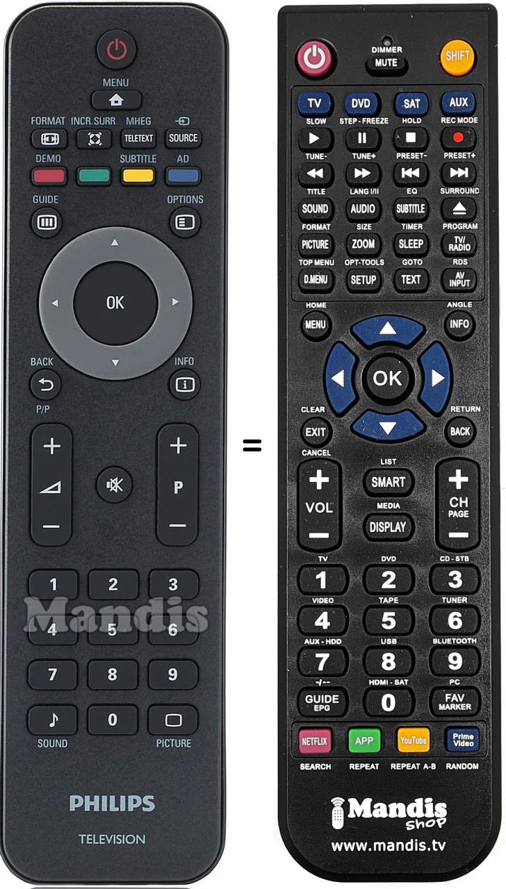 Télécommande qui remplace celle d'origine car elle possède les mêmes fonctions.