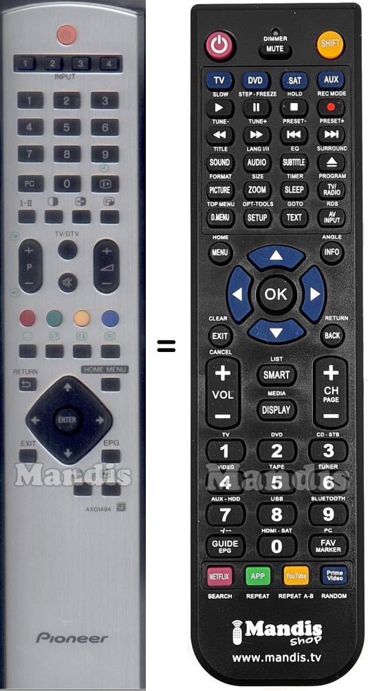 Cette télécommande remplace entièrement votre AXD1494 et offre toutes les fonctions de l'originale.
