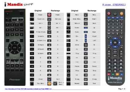 Un document est inclus pour vous aider à utiliser facilement la nouvelle télécommande, en indiquant la correspondance des boutons.