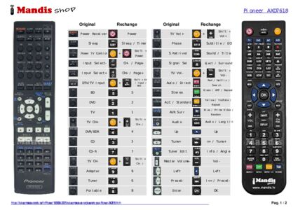Accueil > Marques > Télécommandes Pioneer > Télécommande pour Pioneer AXD7618 > Répartition interactive des touches Pioneer AXD7618