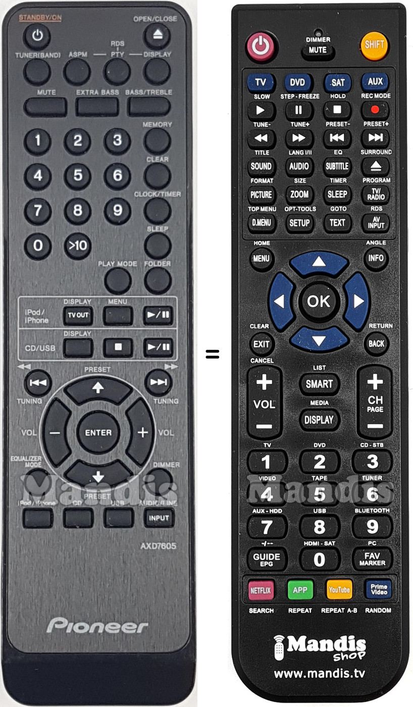 Télécommande équivalente Pioneer AXD7690Disponible en stock22,73 € (TVA incluse)