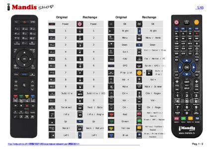 Un document est inclus pour vous aider à utiliser facilement la nouvelle télécommande, en indiquant la correspondance des boutons.