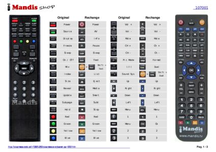 Un document est inclus pour vous aider à utiliser facilement la nouvelle télécommande, en indiquant la correspondance des boutons.