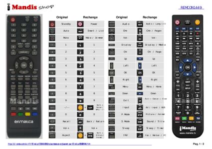Un document est inclus pour vous aider à utiliser facilement la nouvelle télécommande, en indiquant la correspondance des boutons.