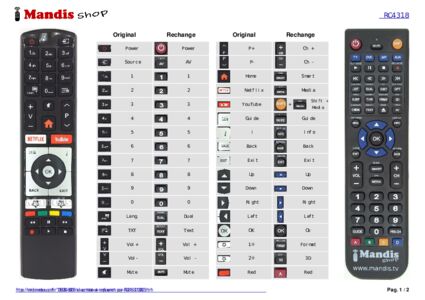 Un document est inclus pour vous aider à utiliser facilement la nouvelle télécommande, en indiquant la correspondance des boutons.