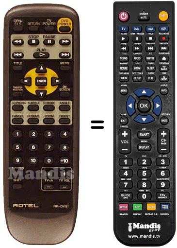 Télécommande qui remplace celle d'origine car elle possède les mêmes fonctions.