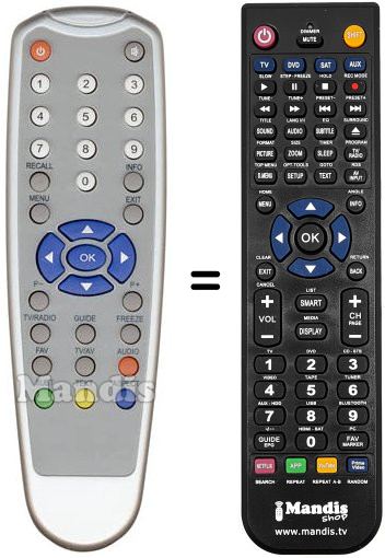 Télécommande qui remplace celle d'origine car elle possède les mêmes fonctions.