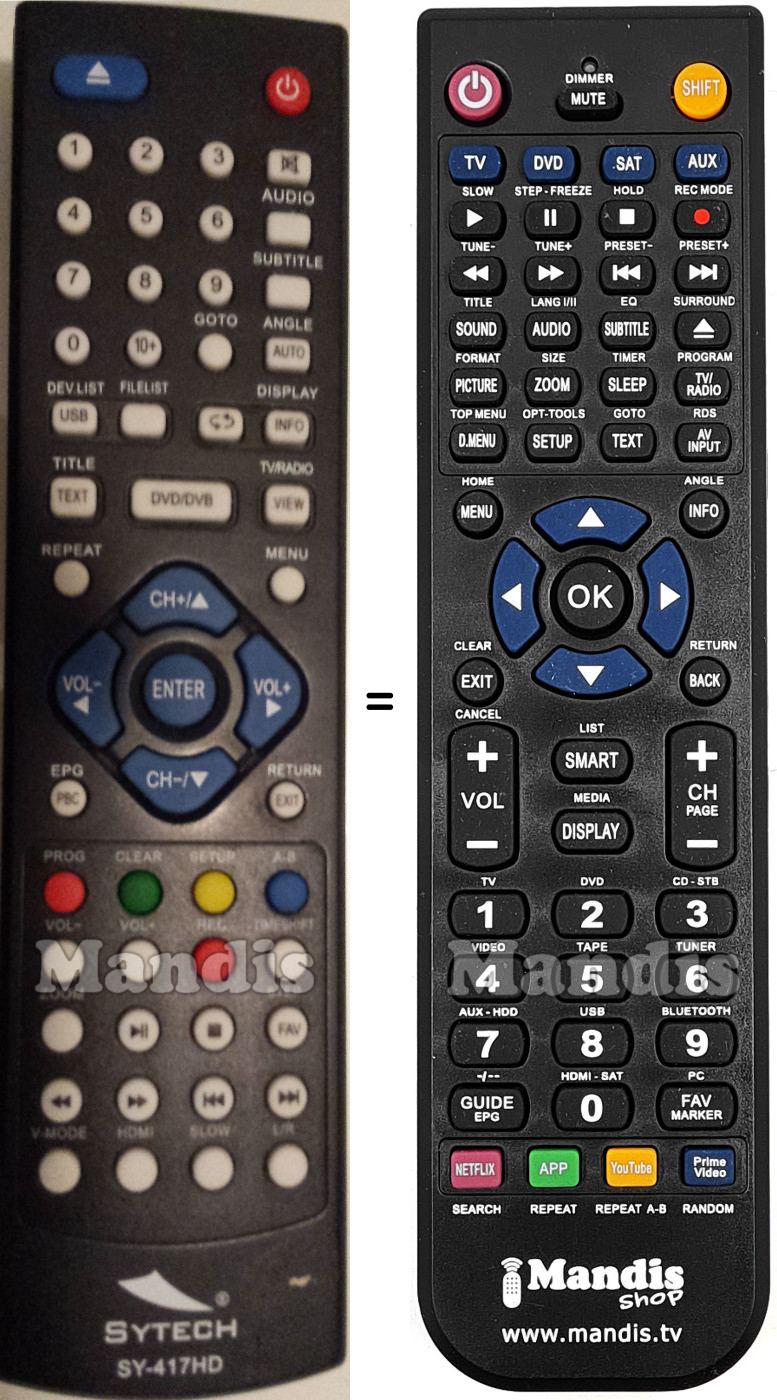 Cette télécommande remplace entièrement votre SY-417HD et offre toutes les fonctions de l'originale.