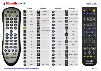 Accueil > Marques > Télécommandes Sagem > Télécommande pour SAGEM REMCON081