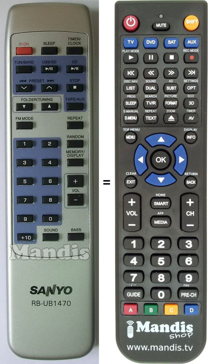 Cette télécommande remplace entièrement votre RB-UB1470 (MRC31X000XX020) et offre toutes les fonctions de l'originale.