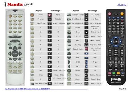 Un document est inclus pour vous aider à utiliser facilement la nouvelle télécommande, en indiquant la correspondance des boutons.