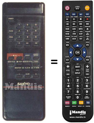 Télécommande qui remplace celle d'origine car elle possède les mêmes fonctions.