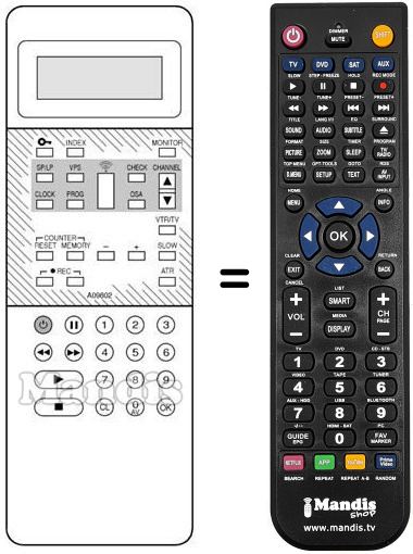 Télécommande qui remplace celle d'origine car elle possède les mêmes fonctions.