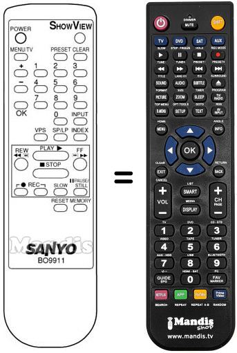 Télécommande qui remplace celle d'origine car elle possède les mêmes fonctions.