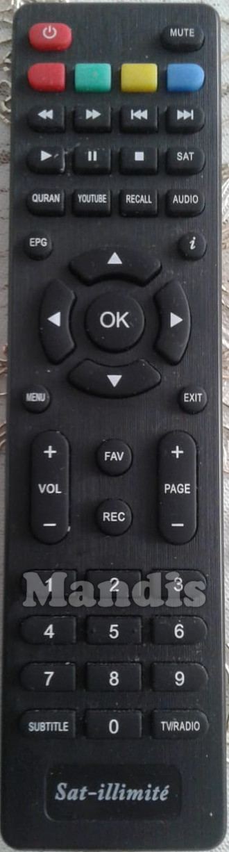 Télécommande d'origine 200HD de la marque Sat Illimite. Il s'agit d'un modèle de télécommande d'origine.