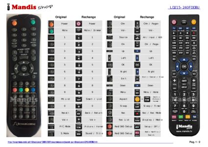 Un document est inclus pour vous aider à utiliser facilement la nouvelle télécommande, en indiquant la correspondance des boutons.