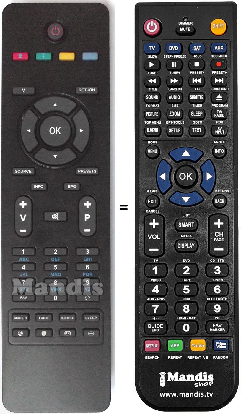 Télécommande qui remplace celle d'origine car elle possède les mêmes fonctions.