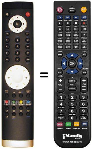 Télécommande qui remplace celle d'origine car elle possède les mêmes fonctions.