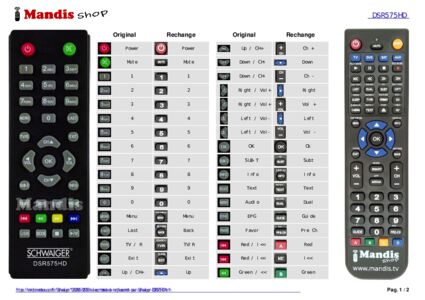 Accueil > Marques > Télécommandes Schwaiger > Télécommande pour Schwaiger DSR575HD