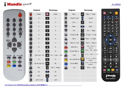 Un document est inclus pour vous aider à utiliser facilement la nouvelle télécommande, en indiquant la correspondance des boutons.