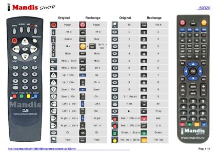 Cette télécommande remplace entièrement votre 60320 et offre toutes les fonctions de l'originale.