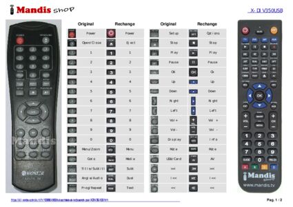 Cette télécommande remplace entièrement votre X-DIV 350 USB et offre toutes les fonctions de l'originale.