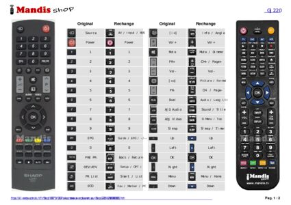 Un document est inclus pour vous aider à utiliser facilement la nouvelle télécommande, en indiquant la correspondance des boutons.
