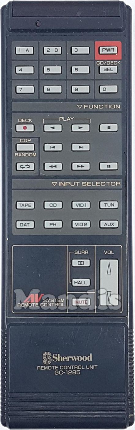 Télécommande d'origine GC-1285 pour chaîne hi-fi de la marque Sherwood. Il s'agit d'un modèle de télécommande d'origine.