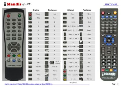 Un document est inclus pour vous aider à utiliser facilement la nouvelle télécommande, en indiquant la correspondance des boutons.