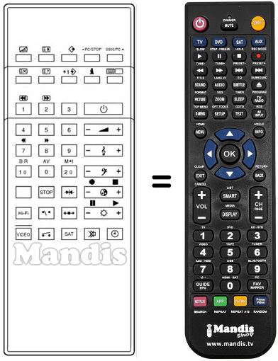 Télécommande qui remplace celle d'origine car elle possède les mêmes fonctions.