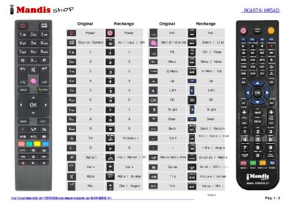 Un document est inclus pour vous aider à utiliser facilement la nouvelle télécommande, en indiquant la correspondance des boutons.