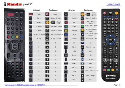 Un document est inclus pour vous aider à utiliser facilement la nouvelle télécommande, en indiquant la correspondance des boutons.