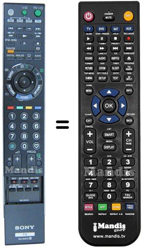 Ci-dessous, nous vous montrerons la correspondance entre chaque bouton de la télécommande d'origine et le bouton qui effectue la même fonction sur la télécommande de remplacement. Dans certains cas, vous devrez peut-être appuyer sur la touche SHIFT avant d'appuyer sur un autre bouton pour effectuer certaines actions. Ces fonctions supplémentaires sont souvent peu utilisées et sont incluses pour faciliter la compréhension de la télécommande de remplacement, ou parce que la télécommande d'origine comporte plus de boutons que son équivalent.