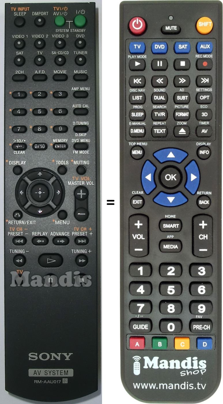 Accueil > Marques > Télécommandes Sony > Télécommande pour Sony RM-AAU017