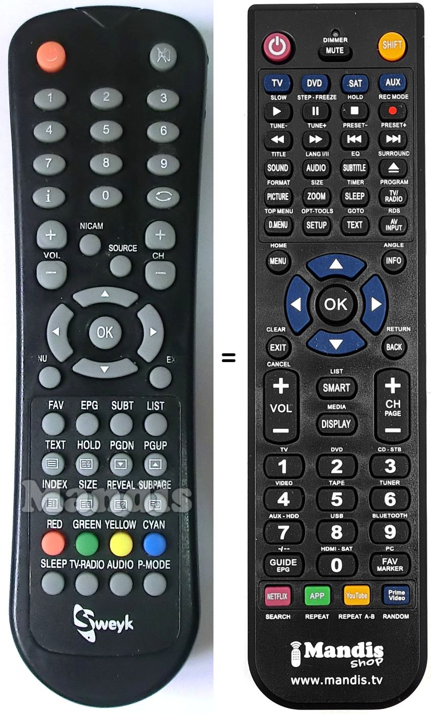 Télécommande qui remplace celle d'origine car elle possède les mêmes fonctions.