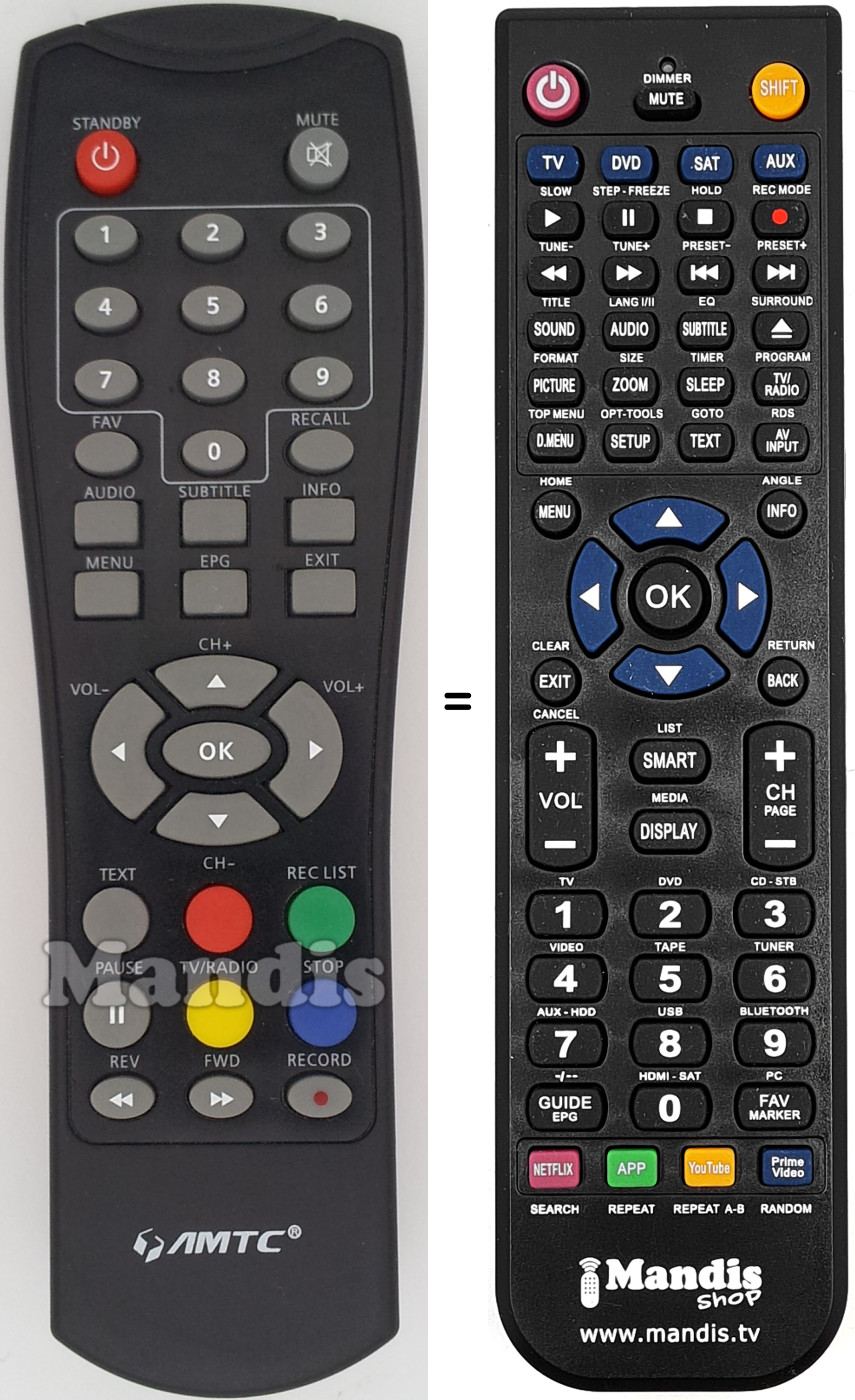 Télécommande qui remplace celle d'origine car elle possède les mêmes fonctions.
