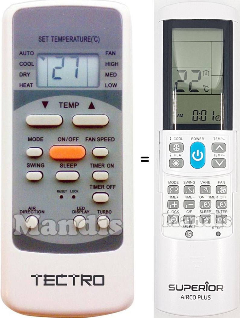 Accueil > Marques climatiseurs > Liste de télécommandes pour climatiseurs > Télécommande universelle TECTRO Aircoplus (42530)