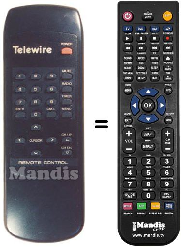 Télécommande qui remplace celle d'origine car elle possède les mêmes fonctions. Il ne s'agit pas d'une télécommande universelle mais d'une télécommande qui remplace celle d'origine. Vous recevrez la télécommande prête à fonctionner, vous n'aurez qu'à mettre les piles. Il n'est pas nécessaire de la programmer. Nous vous garantissons que la télécommande aura exactement les mêmes fonctions que celle d'origine.