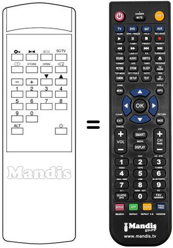 Télécommande qui remplace celle d'origine car elle possède les mêmes fonctions.