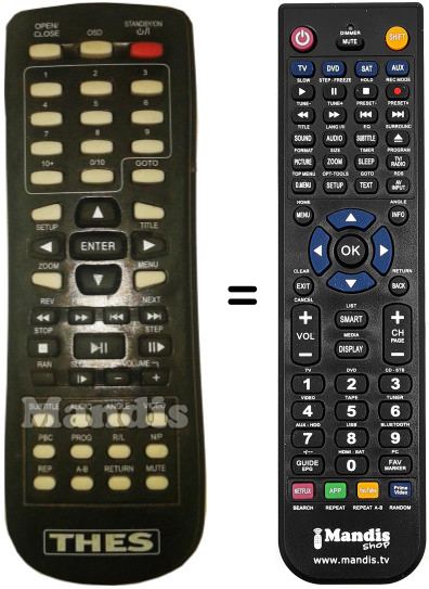 Télécommande qui remplace celle d'origine car elle possède les mêmes fonctions.