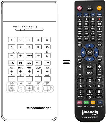 Télécommande qui remplace celle d'origine car elle possède les mêmes fonctions. Il ne s'agit pas d'une télécommande universelle mais d'une télécommande qui remplace celle d'origine. Vous recevrez la télécommande prête à fonctionner, vous n'aurez qu'à mettre les piles. Il n'est pas nécessaire de la programmer. Nous vous garantissons que la télécommande aura exactement les mêmes fonctions que celle d'origine.