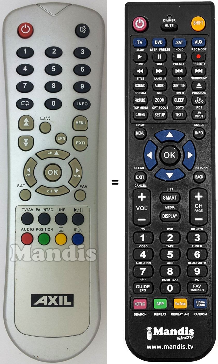 Télécommande qui remplace celle d'origine car elle possède les mêmes fonctions.