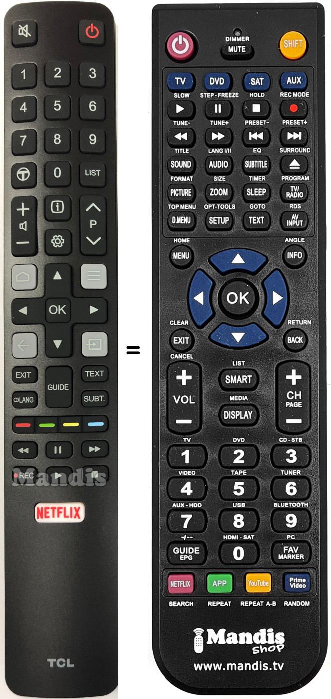 Télécommande qui remplace la télécommande d'origine RC 802 N YAI 1 car elle possède les mêmes fonctions.