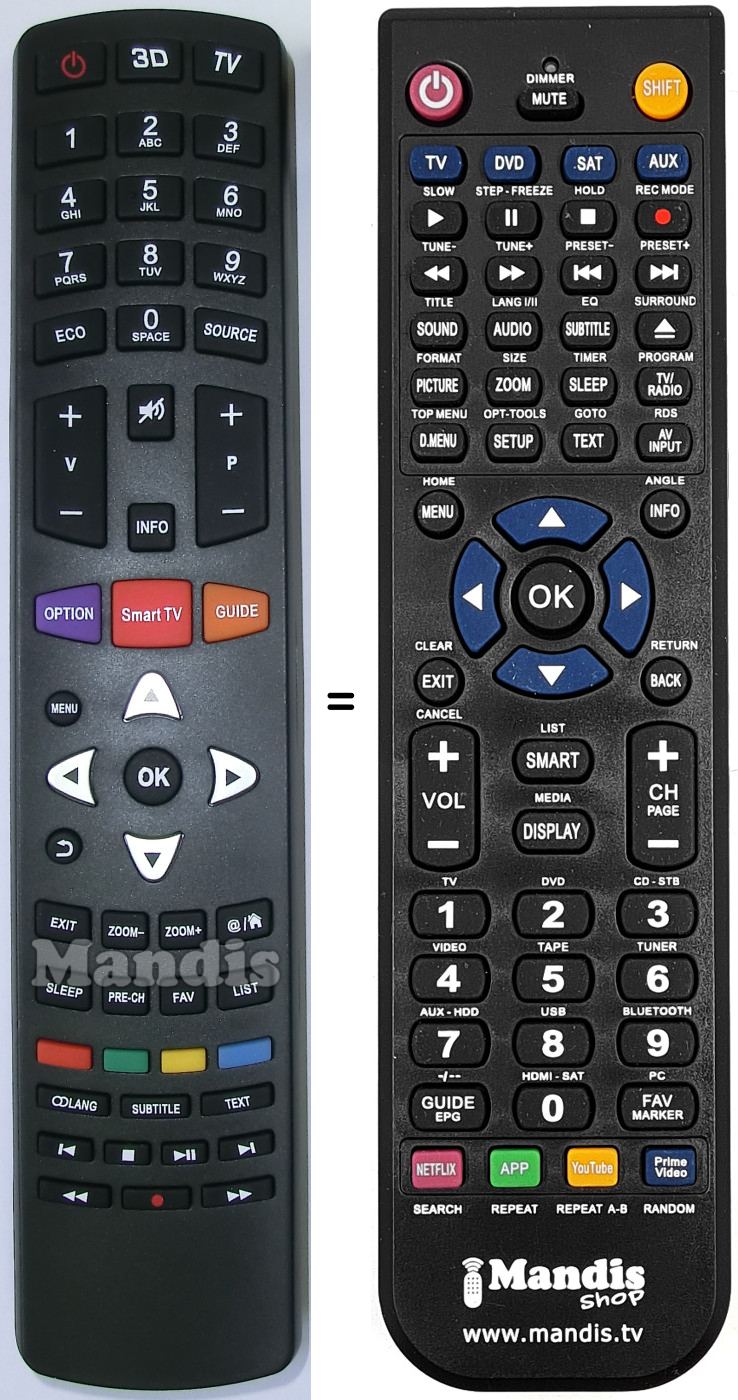 Télécommande qui remplace celle d'origine car elle possède les mêmes fonctions.