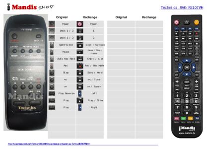Accueil > Marques > Télécommandes Technics > Télécommande pour TECHNICS RAK-RS107WH